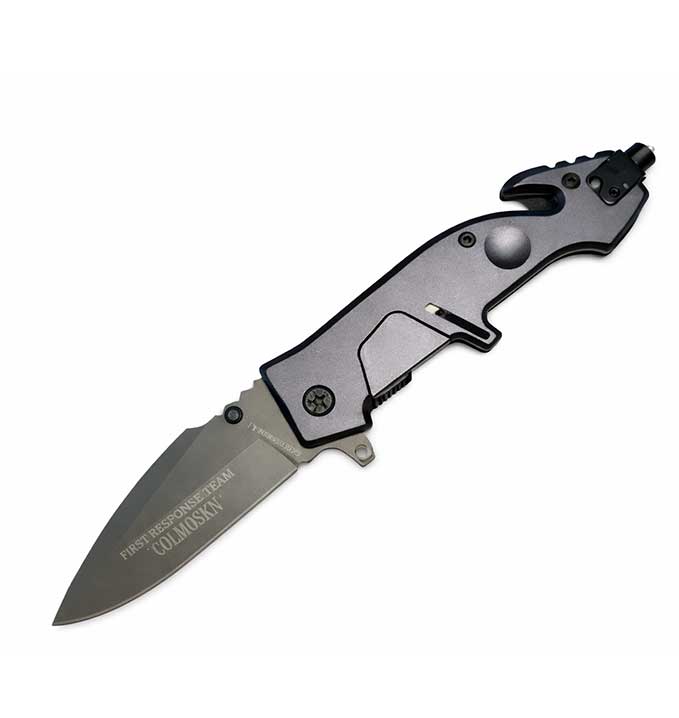 El mango de aluminio ofrece una estructura sólida, liviana y resistente, garantizando un agarre firme incluso en condiciones exigentes. Incorpora rompevidrios y cortacinturón integrados, funciones clave para situaciones de emergencia y rescate.